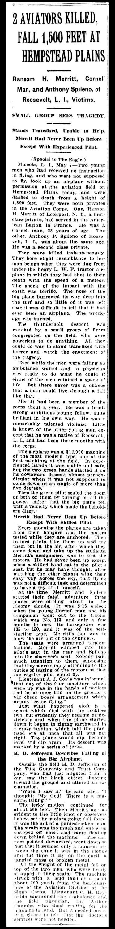 - He died on 7 May 1917 in Mineola, New York, at age 22.1