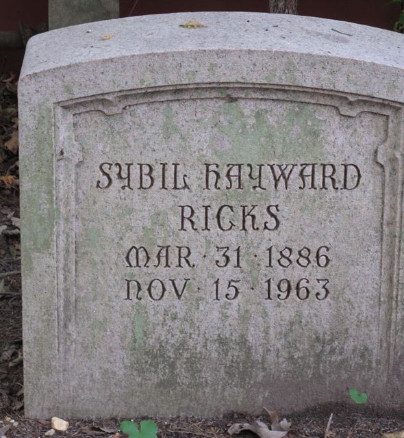 - [S6051] Find A Grave: Christ Church Cemetery, Manhasset, New York, Sybil Hayward Ricks, created by DMC, added Oct 2009, memorial number 43411453.