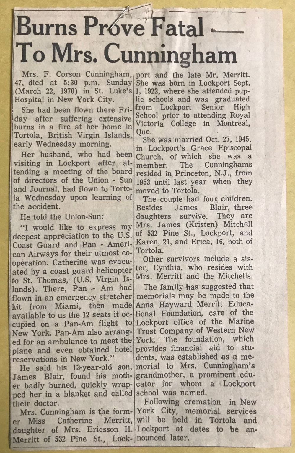 - In 1970 Catherine moved to Tortola, British Virgin Islands.2