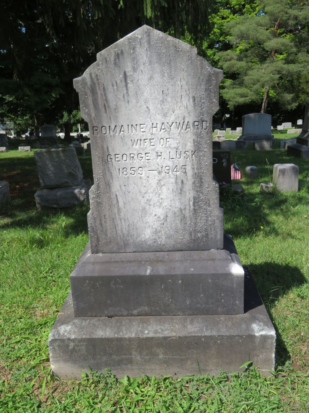 - [S7661] Find A Grave: Pittsford Cemetery, Pittsford, New York, Romaine Hayward Lusk, created by Vicki Masters Profitt, added Feb 2012, memorial number 84890669.