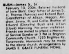 - [S9076] The Buffalo News, Buffalo NY, Newspaper, James S Bush Sr obituary notice, published 12 Feb 2004 p 43.