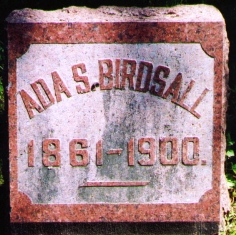 - [S6456] Find A Grave: Brooklawn Cemetery, Walker, Michigan, Ada Sophia Manley Birdsall, created by thawley, added May 2008, memorial number 26988400.