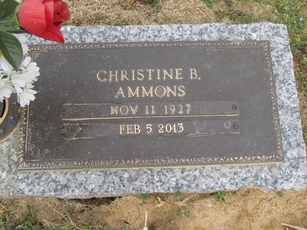 Christine Butner Ammons, age 85, resident of Oakland and wife of the late Tommy D. Ammons died Tuesday evening, February 5, 2013 at the Baptist Memorial Hospital in Memphis. Services for Mrs. Ammons will be at 11 Friday morning at the Peebles West Funeral Chapel at Oakland with visitation one hour before services. Interment will follow in the Fayette County Memorial Park Cemetery on Highway 64.