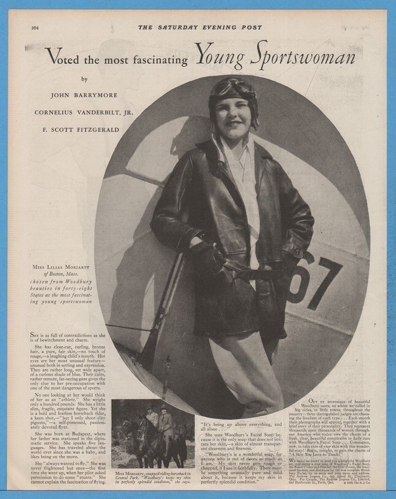 Young Lilias grew up with the Moriarty relatives. She was educated at Miss May's school in Boston and at the Spence school in New York, and finished her education abroad. She became a good horsewoman, a good shot and an excellent aviatrix. In 1929 she was voted "the most fascinating Young Sportswoman" by a panel of distinguished judges and was photographed by Edward Steichen for a magazine article about her, promoting Woodbury's facial soap.