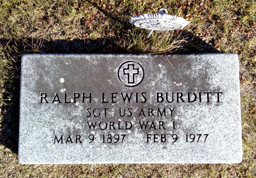 - [S5941] Find A Grave: Meeting House Hill Cemetery, Brattleboro, Vermont, Ralph Lewis Burditt, created by Eric Anderson, added Nov 2013, memorial number 120545138.