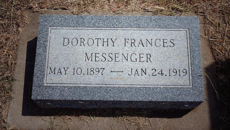 She was born May 13, 1894, in Cleveland, Kingman County, Kansas, to William and Millie Hess Messenger. She grew up as a part of a pioneer farm family and was graduated from Kingman High School. She attended Bethany College of Lindsborg and taught in a one-room school for a year before her marriage.