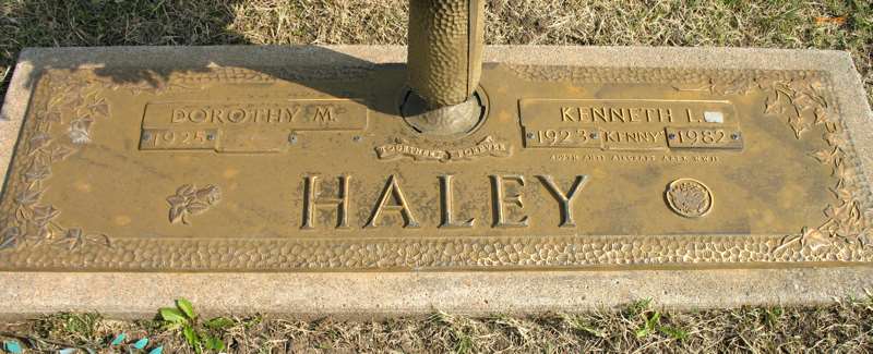- [S8049] Find A Grave: Memorial Park Cemetery, Enid, Oklahoma, Kenneth Leroy Haley, created by David Schram, added Oct 2014, memorial number 138080051.