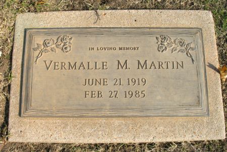 - [S8049] Find A Grave: Memorial Park Cemetery, Enid, Oklahoma, Vermalle M Haley Martin, created by David Schram, added Oct 2014, memorial number 138079855.