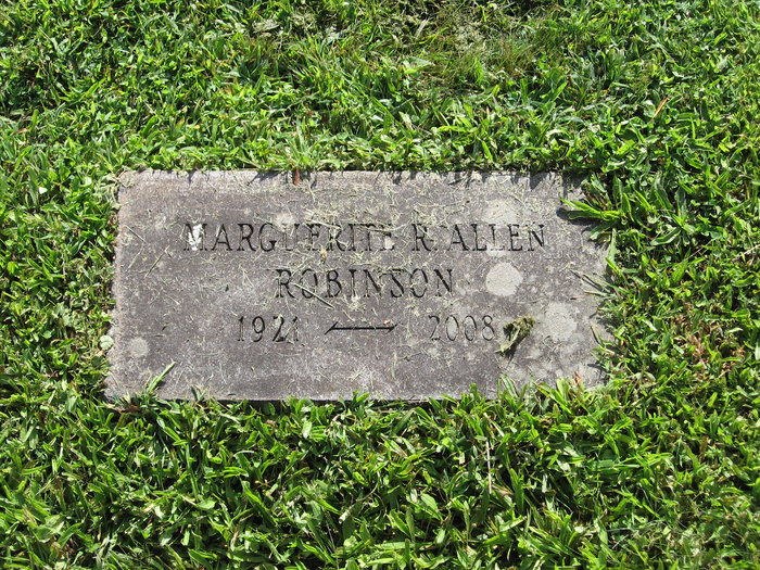 - [S2161] Find A Grave: Crystal Lake Cemetery, Gardner, Massachusetts, Marguerite R Allen Robinson, created by Ryan-O, added Aug 2013, memorial number 115430140.