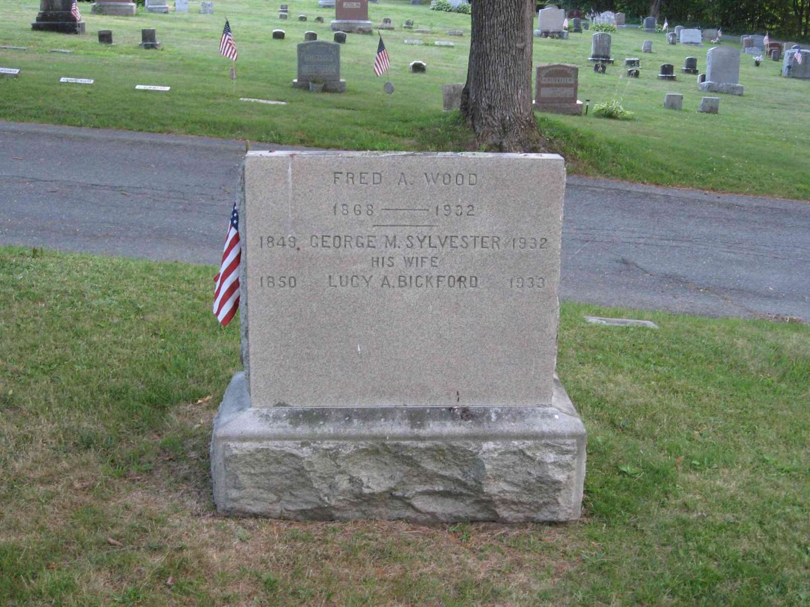 - [S5660] Find A Grave: Green Bower Cemetery, Gardner, Massachusetts, Fred A Wood, created by Ryan-O, added Jul 2011, memorial number 73562957.