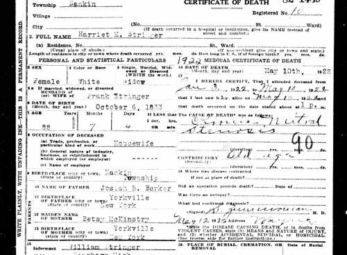 - [S8148] Find A Grave: Newburg Cemetery, Livonia, Michigan, Francis Stringer, created by Barbara Lewis, k Mazor, added Nov 2004, memorial number 9738946.