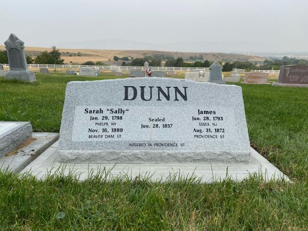 - She was buried in Beaver Dam Cemetery, Beaver Dam, Utah. Family records indicate that they [James & Sarah] were buried in Providence, but the Providence City Cemetery has no record of them being buried there, and they do not have a headstone there. In 2021, descendants of James and Sally created a headstone for them and placed it in the Beaver Dam Cemetery, next to the headstone of Crandell and Mary Ann Dunn.3