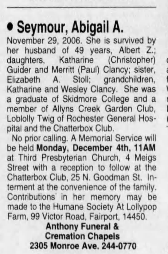 ~ Katherine A. Adams, all of Canandaigua,New York.