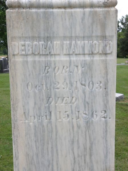 - [S8230] Find A Grave: Elmwood Cemetery, Middle Granville, New York, Deborah Hall Hammond, created by Marion Walter, added Jun 2010, memorial number 54168124.