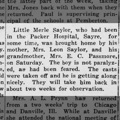 The people of Boyne City were shocked Sunday afternoon by the news of the death of Malcolm Campbell, who left here for his home in Simmons only the Monday before, in good health. The death of Mr. Campbell was due to an injury received in the mill in which he was employed. On Saturday afternoon, while assisting a boy to put on his belt, his clothing caught and his arm drawn across the saw, which cut very deeply just above the elbow. The services of a physician were secured as soon as possible and he was taken to the hospital in Manistique, accompanied by his wife and the foreman of the mill, where the arm was properly attended to, but owing to the weak condition of Mr. Campbell's heart, it was impossible for him to rally and at 5:30 Sunday morning he passed away.