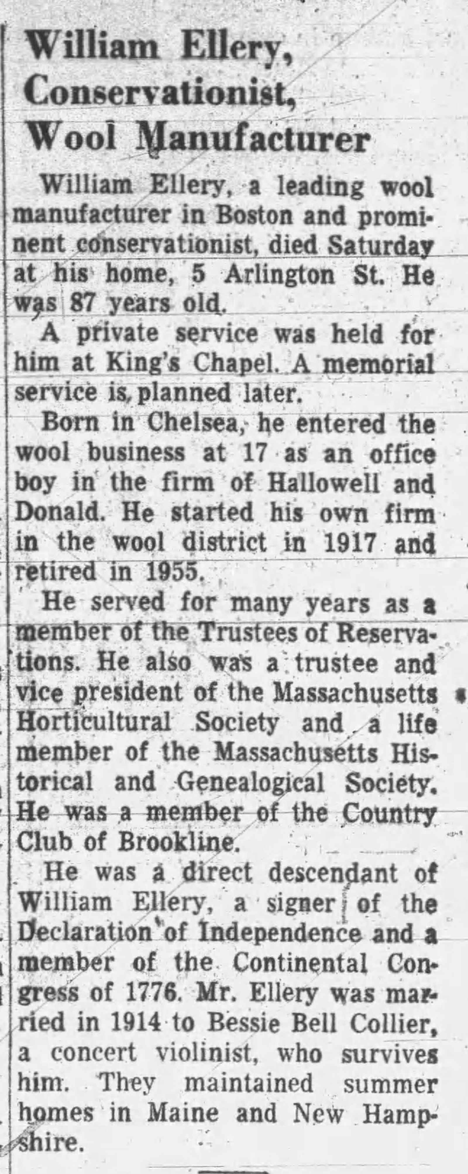 - In 1914 William Ellery was a wool merchant.1