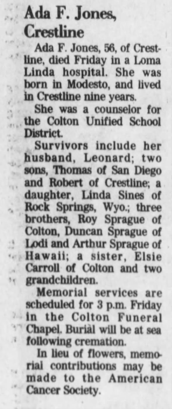 A Celebration of Life will be held at Bear Creek Community Church on October 5, 2015 at 1:00pm. In lieu of flowers, donations can be made to the Alzheimer's Society.
