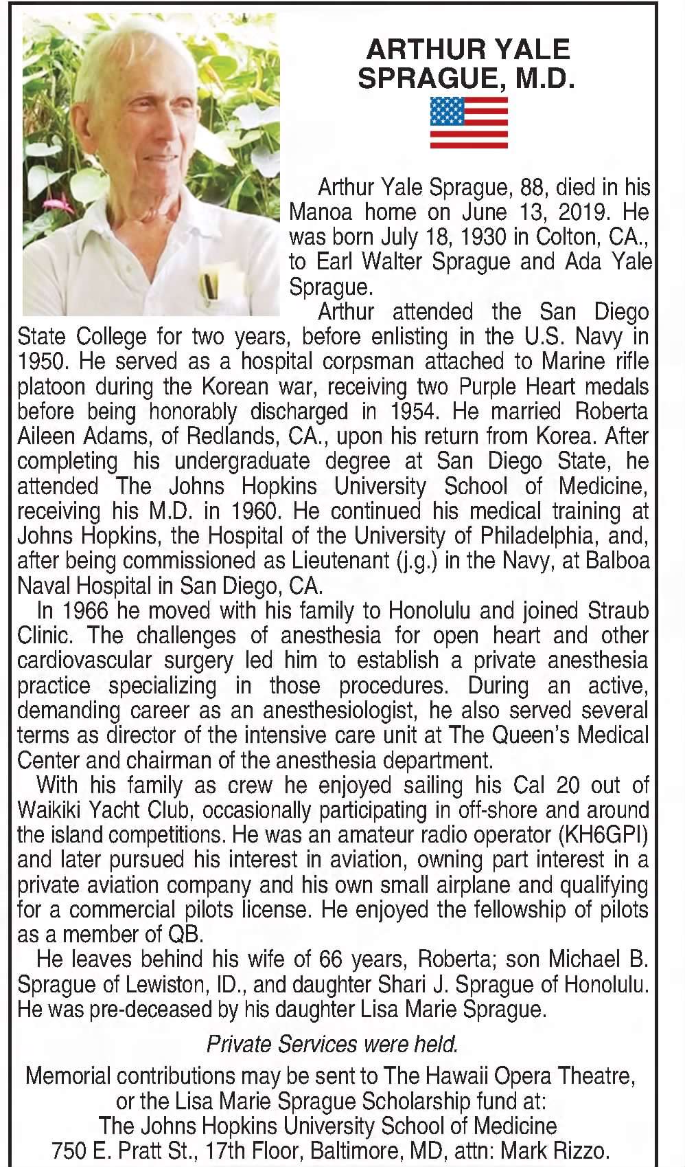 Duncan Sprague died peacefully on the morning of September 23, 2015, at the age of 87. Duncan lost his bout with Alzheimer's which took his mobility, strength, humor and finally his mind but not his love of his wife of 62 years, Ann.