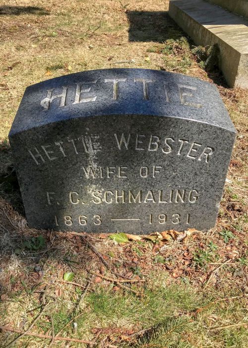 - [S9027] Find A Grave: Greenwood Union Cemetery, Rye, New York, Hattie L Webster Schmaling, created by Holly Miller, added Aug 2016, memorial number 168473240.