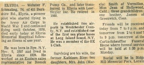- [S5677] Find A Grave: Ridge Hill Memorial Park, Amherst, Ohio, Webster F Schmaling, created by Msmith, Memories Live Forever, added Aug 2020, memorial number 214581826.
