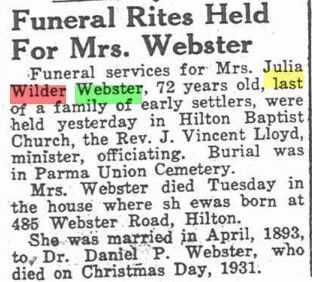 - Julia Wilder died on 12 October 1943 in Hilton, New York, at age ~72.1
