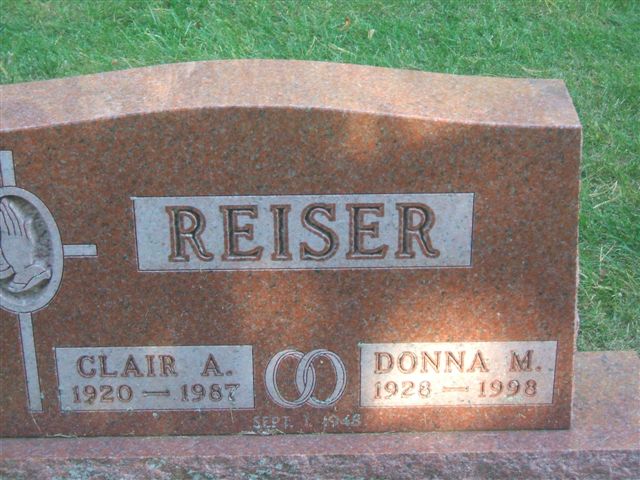 - Donna married Clair Albert Reiser, son of Oscar William Reiser and Dora Ella Lankton, on 1 September 1948.1