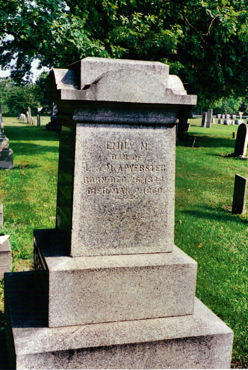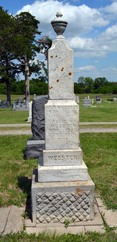 In 1903 Mr. Webster was married a second time and chose as his bride, Mrs. Joie Snedeker, who survives her husband as the last member of his family.