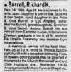 - [S7459] Democrat and Chronicle, Rochester, NY, Newspaper, Richard K Burrell obituary notice, published 25 Feb 1986 p 8.