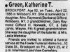 - [S7459] Democrat and Chronicle, Rochester, NY, Newspaper, Katherine T green obituary notice, published 24 Apr 1986, p 16.