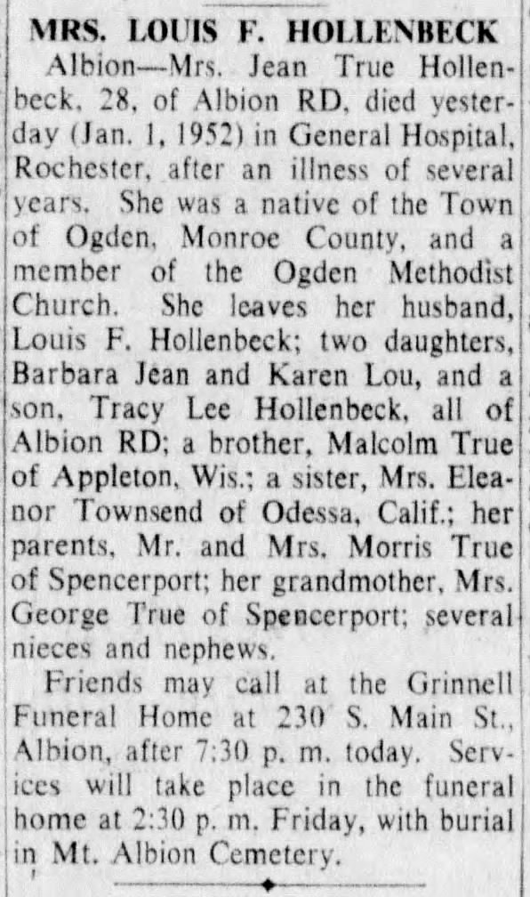 According to one surviving officer's report after the mission, the Polly Ann was hit by flack and the crew lost contact with the tail gunner. SSG True was on the way back from his position to the rear to check on the tail gunner when the B-17 was attacked by a German fighter. No further word was heard from SSG True and no acknowledgement was given by him when the Pilot commanded everyone to bail out.