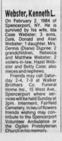 - [S7459] Democrat and Chronicle, Rochester, NY, Newspaper, Kenneth L Webster obituary notice, published 5 Feb 1984 p 100.