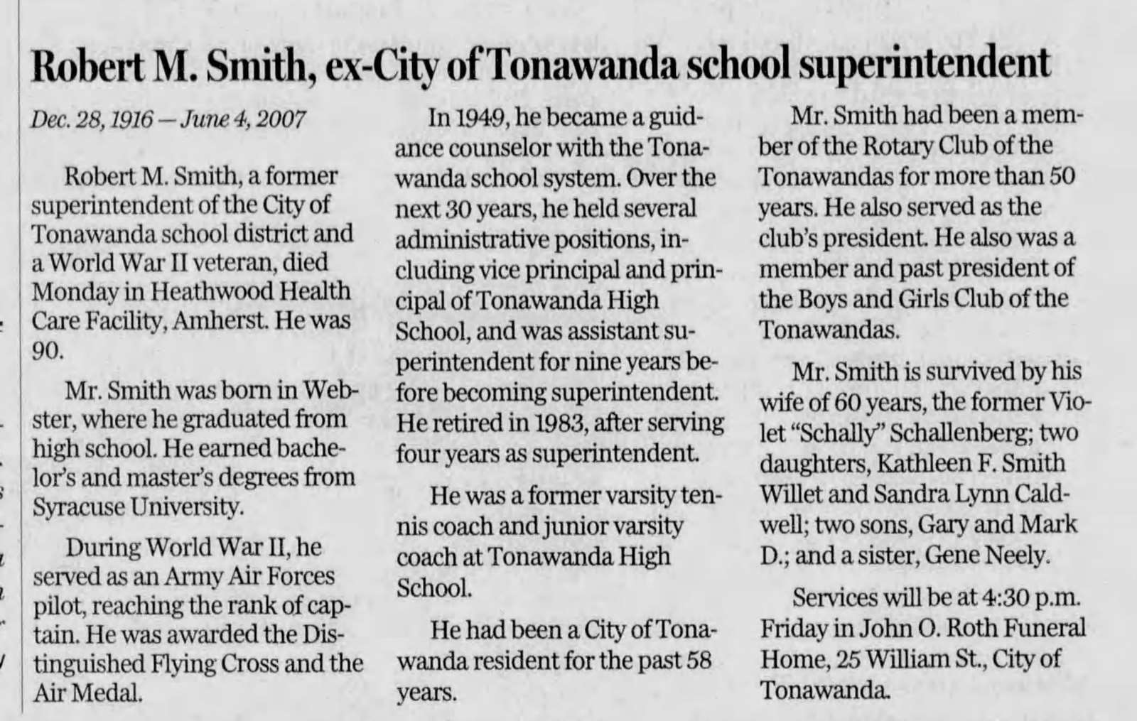 She was preceded in death by her parents, by her husband Donald F. Smith in 1996, and by two brothers, George and Robert Rader.1