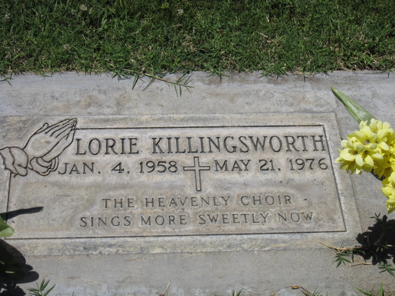 - [S9212] Find A Grave: Sutter Cemetery, Sutter, California, Lorie Jean Killingsworth, created by Sena Minshew, Barbara Hammons, Dalt, added Jul 2008, memorial number 28465560.