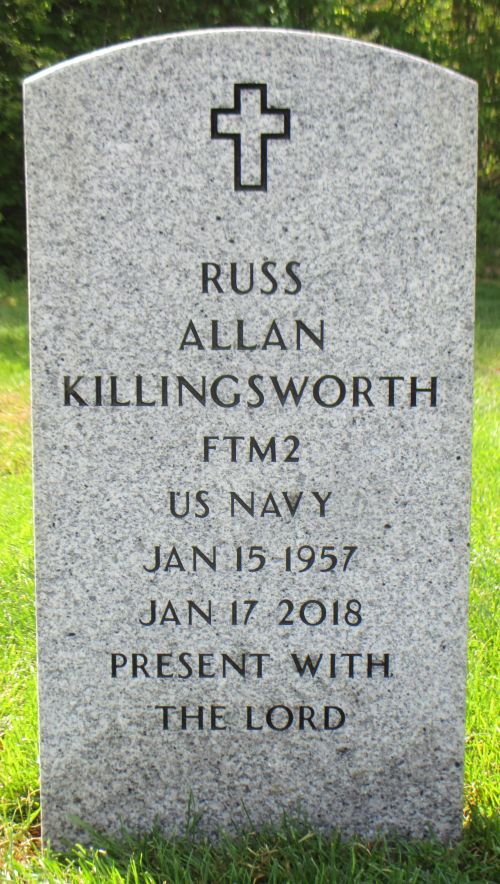 - [S3920] Find A Grave: Tahoma National Cemetery, Kent, Washington, Russ Alan Killingsworth, created by J Edward Ross, added Jan 2018, memorial number 185828942.