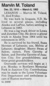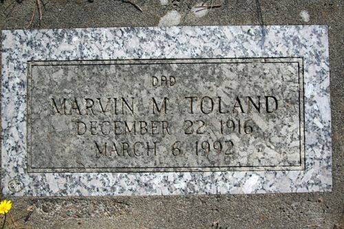 - [S8626] Statesman Journal, Salem, OR, Newspaper, Marvin M Toland obituary notice, published 8 Mar 1992 p 14.