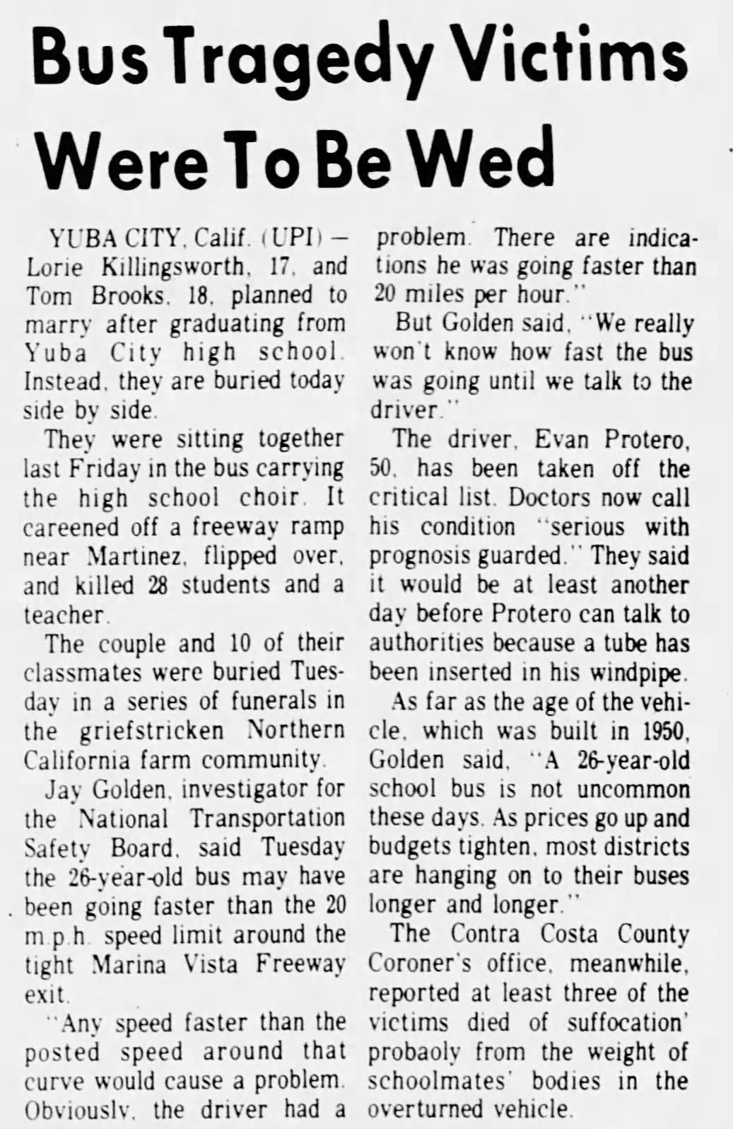 - [S9213] Enterprise-Record, Chico, CA, Newspaper, Buss tragedy, published 22 May 1976 p 1.