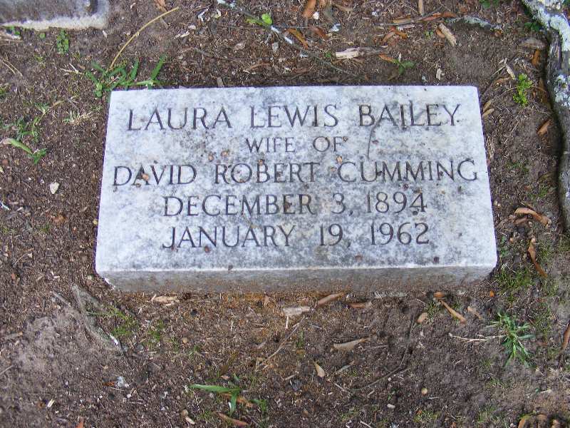 - [S7162] Find A Grave: Oak Hill Cemetery, Griffin, Georgia, Laura Lewis Bailey Cumming, created by RL Duncan, added Sep 2008, memorial number 29693484.
