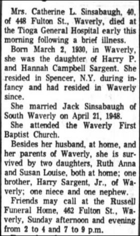 For the full obituary, see: The Ithaca Journal, Friday, November 29, 1991, page 4A.2