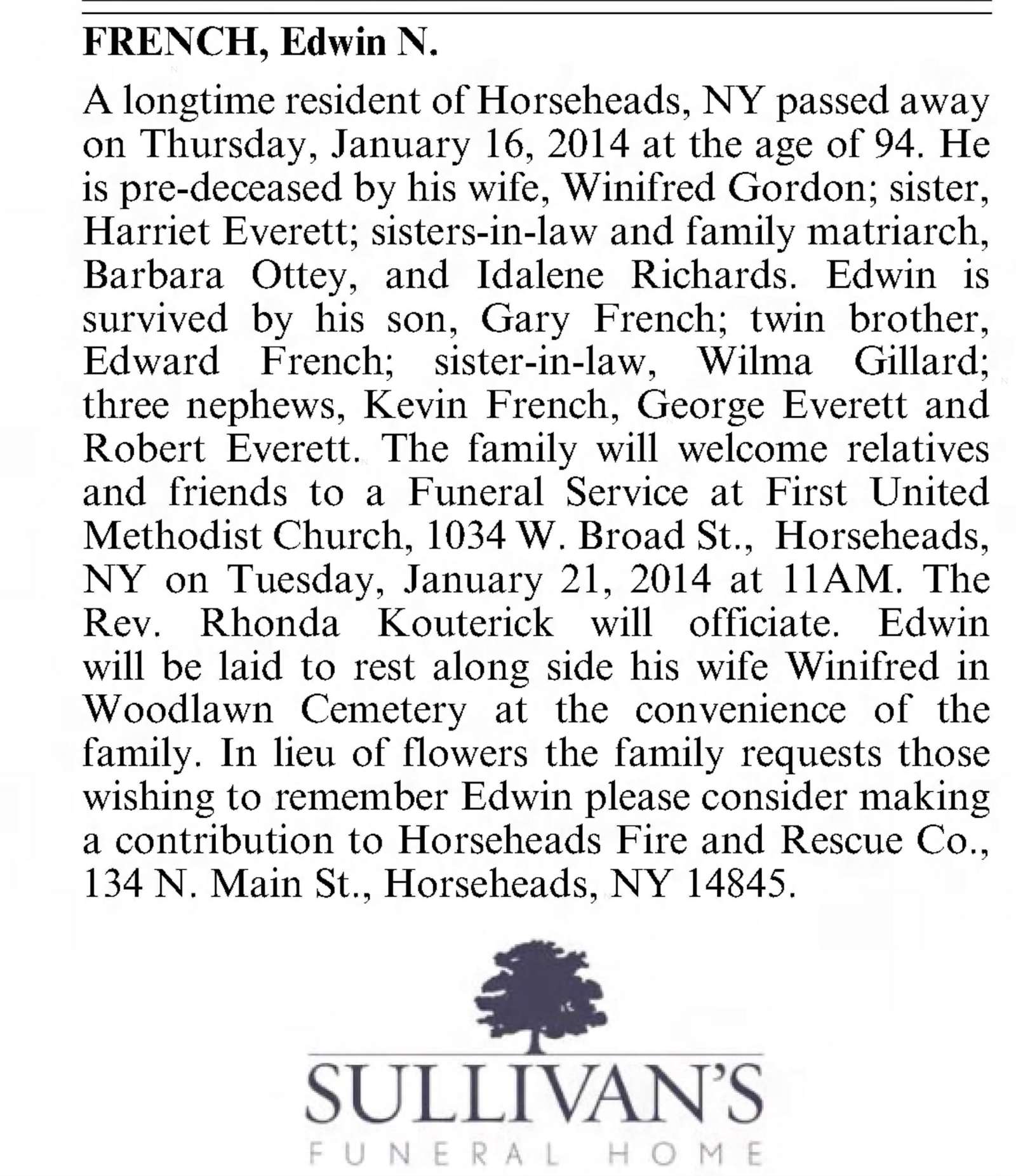 Born June 28, 1917, in Elmira, N.Y., he was a veteran of WWII. He served in the Marines. He married Winifred Myers Aug. 24, 1940, in Montour Falls, N.Y. He was a member of the Grace Baptist Church in Newark and the American Legion.