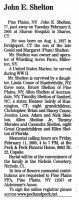 - [S9498] Poughkeepsie Journal, Poughkeepsie NY, Newspaper, obituary notice John Elliott Shelton published 10 Feb 2005 p 4B.